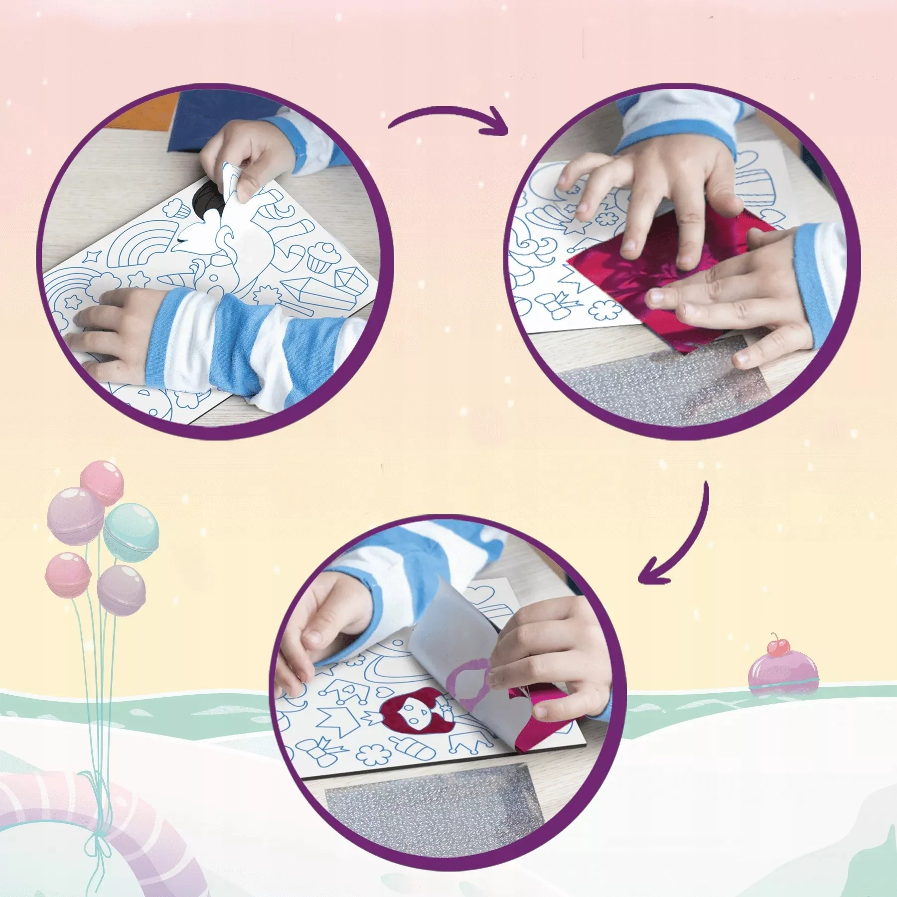 - Piankowe obrazki, kolorowe folie, ilustrowana instrukcja krok po kroku