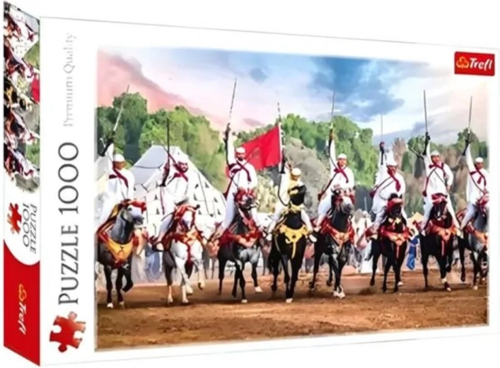 Odkryj radość układania z puzzlami TREFL, które wyróżniają się precyzyjnym wycięciem i solidnymi elementami. Motyw Atak jeźdźców oferuje intensywną atmosferę i szczegółową ilustrację, którą docenią zarówno początkujący, jak i zaawansowani miłośnicy puzzli. Dzięki 1000 elementom zapewniają idealne połączenie wyzwania i relaksu.