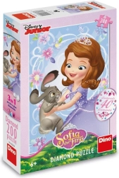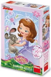Zabawne dziecięce puzzle z serii Diamond Puzzle, które po ułożeniu ozdobisz błyszczącymi kamyczkami. Zawiera 200 elementów, 40 samoprzylepnych kamyczków oraz klej do utrwalenia obrazka. Wielkość ułożonego obrazka to ok. 33 × 47 cm.