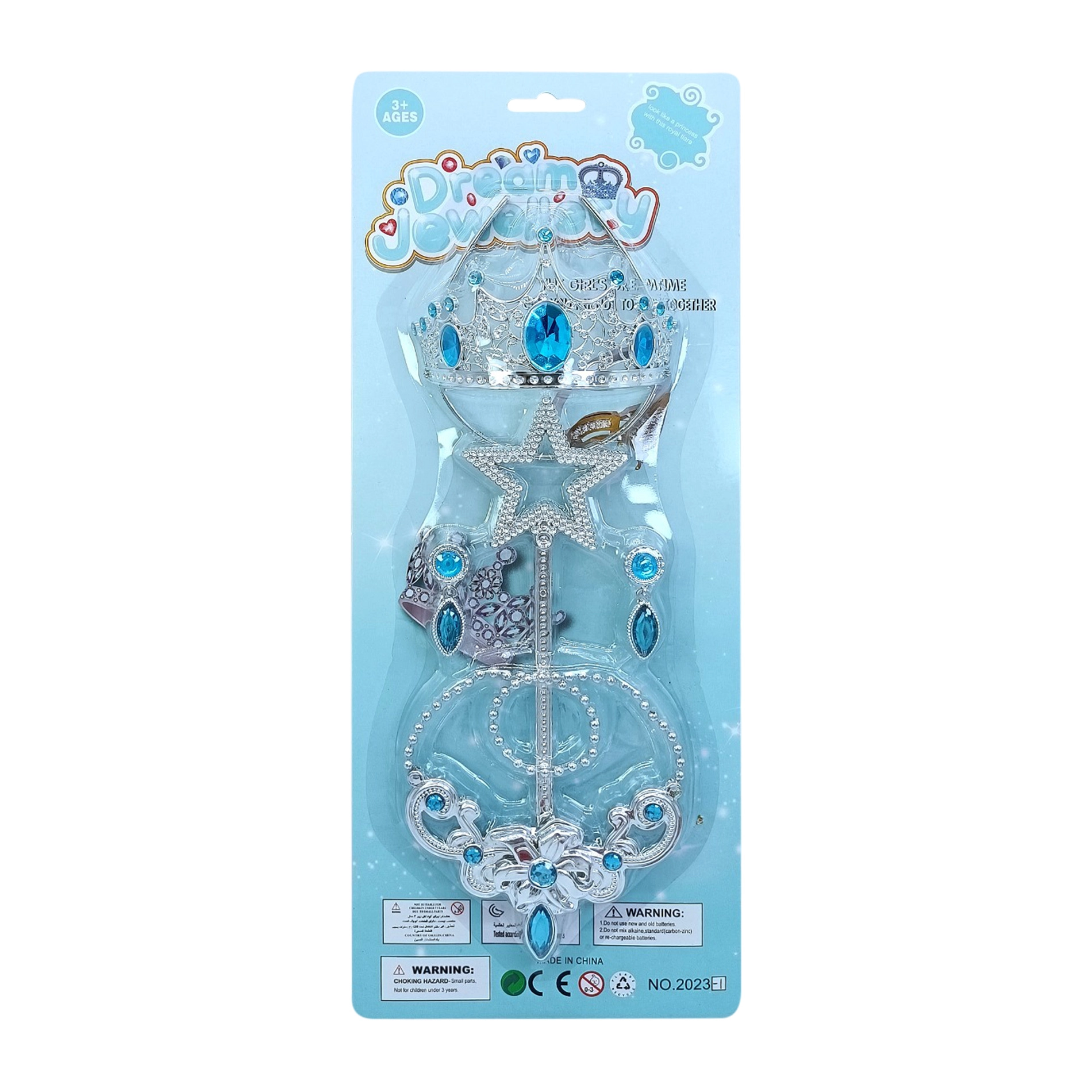 Zmień się w prawdziwą księżniczkę w mgnieniu oka! Ten dziecięcy zestaw zawiera srebrną koronę, magiczną różdżkę, elegancki naszyjnik oraz błyszczące kolczyki z lśniącymi niebieskimi kamyczkami. Idealny na karnawał, urodziny i zabawę w księżniczkę w domu.