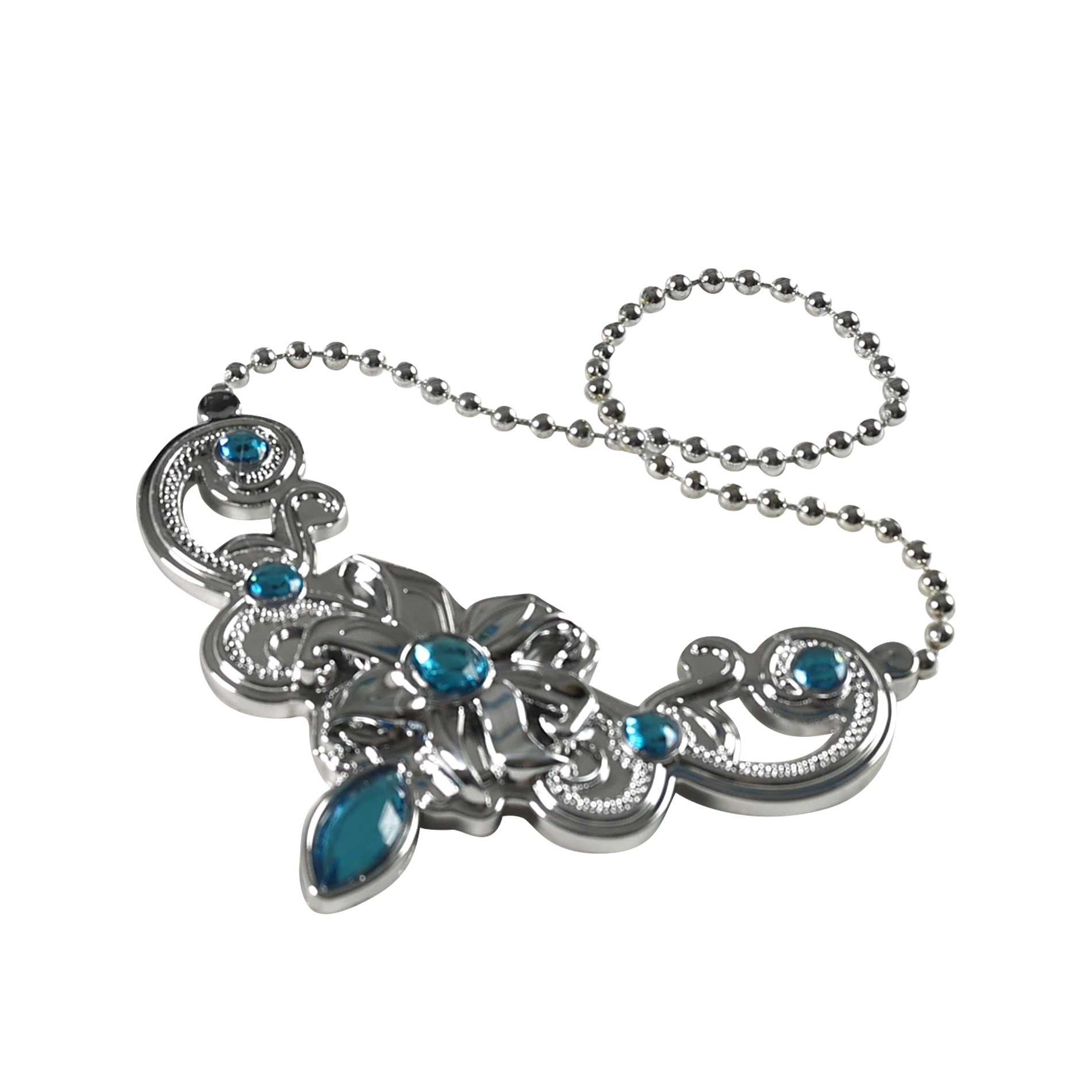 - Srebrny z niebieskimi kamyczkami