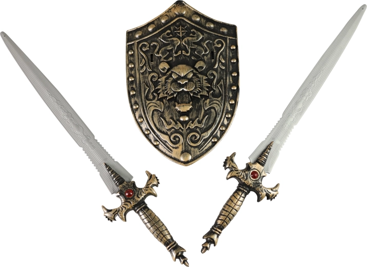 Zostań odważnym rycerzem i chroń swoje królestwo! Dziecięcy rycerski zestaw z tarczą i dwoma mieczami o długości 53 cm to świetny wybór do pełnych akcji zabaw w bohaterów. Łączy bezpieczną rozrywkę z rozwojem dziecięcej wyobraźni – w domu, w ogrodzie lub na karnawale.