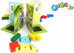 Doświadcz zabawy z grą Qubolo, w której gracze budują wieże z drewnianych elementów. Każdy gracz wybiera przeciwnikowi element, z którym ten musi budować w następnej turze. Celem jest ukończenie wieży wcześniej niż przeciwnik.