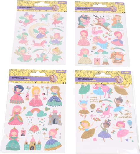Rozbudź dziecięcą wyobraźnię dzięki tymczasowym tatuażom w dziewczęcych motywach. Dzięki prostej aplikacji z użyciem wody nadają się także dla najmłodszych i zapewniają bezpieczną zabawę bez trwałych śladów. Arkusz o wielkości 10,5 × 15 cm zawiera wiele wzorów do dzielenia się z przyjaciółmi.