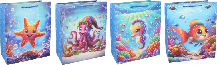 Stylowa torba prezentowa w rozmiarze L ucieszy każdego małego solenizanta. Oferuje praktyczne wymiary 30 × 42 × 12 cm, solidne wykonanie i dziecięce motywy w 4 wariantach – idealna do pakowania większych prezentów.