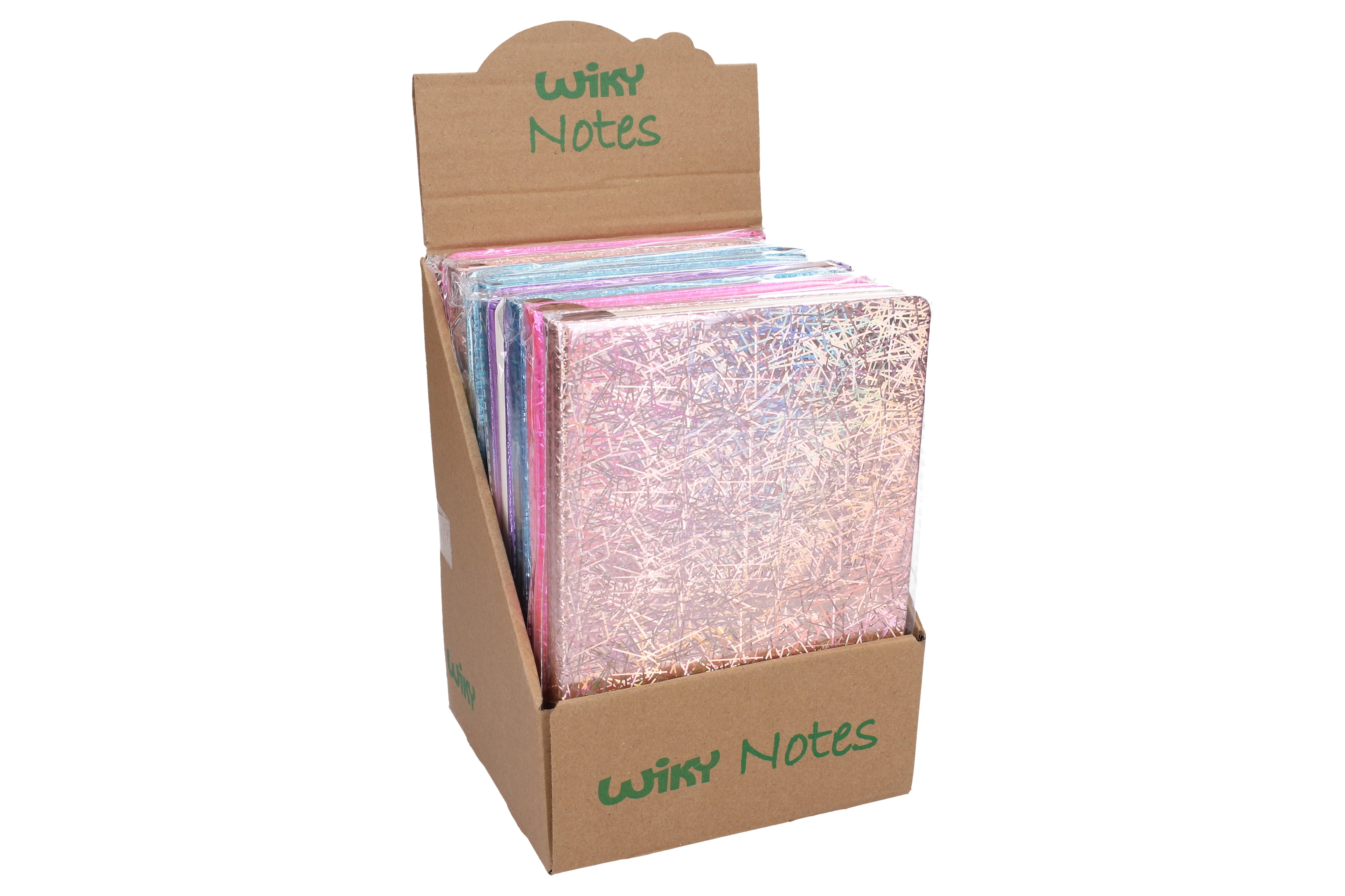 Miks kolorów – fioletowy, srebrny, różowy i niebieski – pozwala wybrać wersję dopasowaną do nastroju lub stylu. Notatnik sprawdzi się w szkole, biurze i do osobistego planowania.