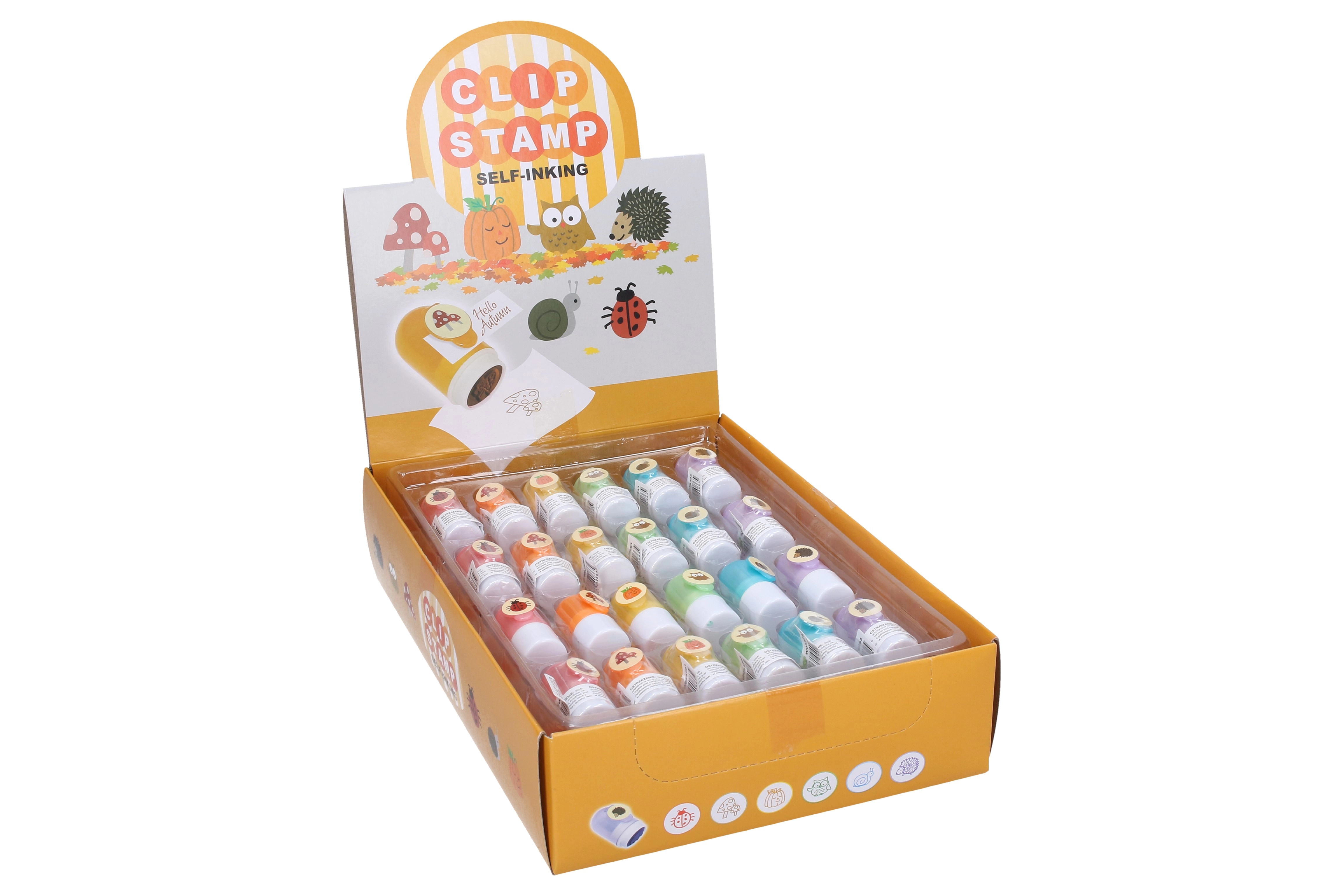 Odkryj zabawne samotuszujące stempelki z klipsem w pełnym radości miksie motywów, idealne dla dzieci, do twórczości i jako nagrody. Praktyczny klips pozwala mieć stempel zawsze pod ręką, a 48 szt. w display boxie świetnie sprawdzi się w szkołach, biurach i w domu. Sześć wesołych wariantów: biedronka, muchomor, dynia, sowa, ślimak i jeż.