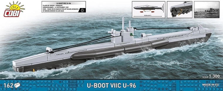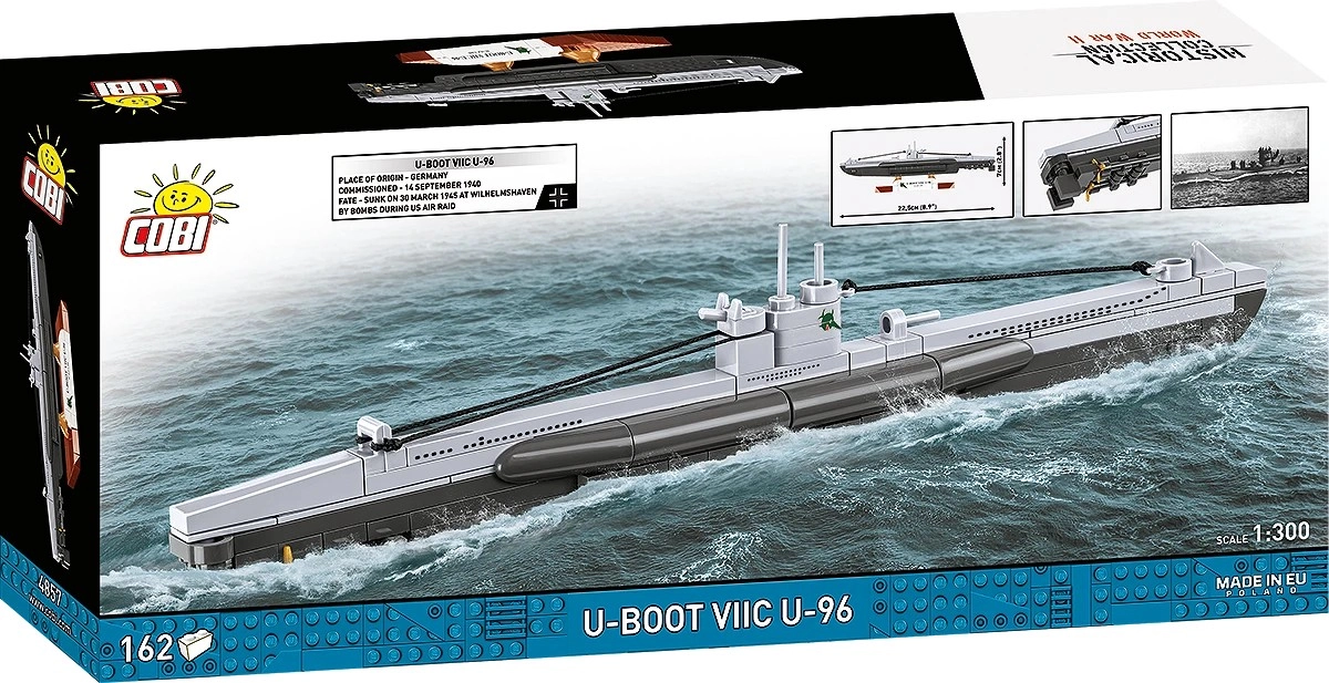 Złóż legendarny okręt podwodny U-BOOT VIIC U-96 w skali 1:300 z 162 elementów. Wysokiej jakości europejski zestaw ucieszy kolekcjonerów, miłośników historii oraz fanów filmu Das Boot. Oferuje realistyczne detale kadłuba, wieżę z peryskopem oraz elegancką podstawkę do wystawienia modelu.