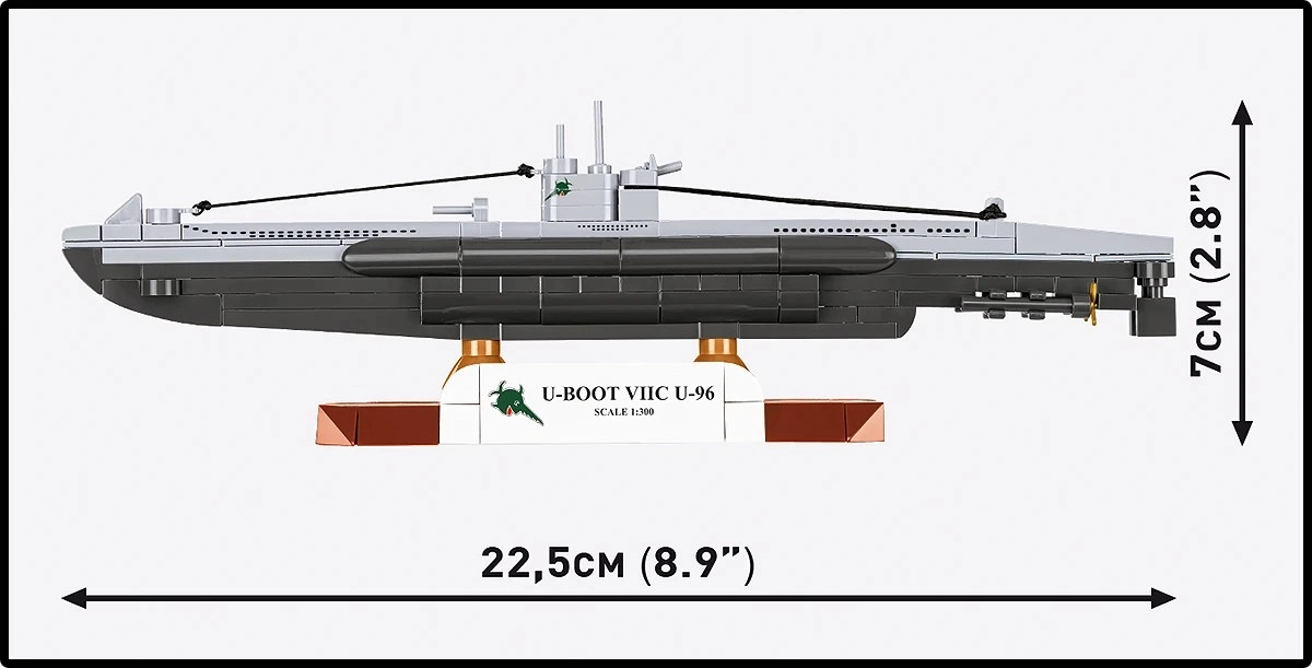 W zestawie solidna podstawka z opisem U-BOOT VIIC U-96, która podkreśli Twój model i zapewni stabilność podczas prezentacji.