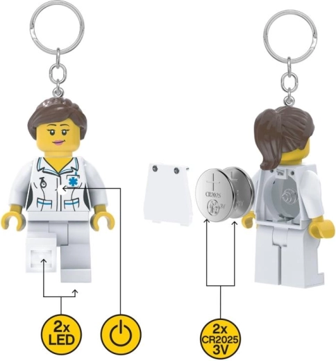 Ożyw swoje klucze lub plecak stylowym brelokiem LEGO z postacią pielęgniarki ze światełkiem LED. Autentyczna minifigurka z praktycznym oświetleniem aktywowanym przyciskiem na klatce piersiowej pomoże Ci trafić kluczem do zamka w ciemności. Lekki i wytrzymały dodatek na co dzień, idealny jako prezent dla fanów LEGO.