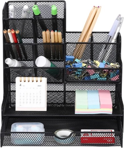 Wielokomorowy układ utrzymuje przybory piśmiennicze, karteczki, spinacze i inne drobiazgi na swoim miejscu, abyś miał wszystko natychmiast pod ręką.
