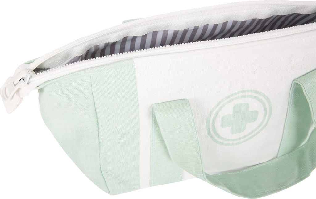Stylowy zestaw lekarski dla dzieci od 3 lat w lekkiej materiałowej torbie z uchwytem przynosi wszystko do realistycznej zabawy w lekarza: stetoskop, wysuwana strzykawka, termometr ze wskaźnikiem, pęseta, szpatułka, miękki bandaż na rzep oraz zmazywalne karty pacjenta z pisakiem. Wspiera motorykę małą, wyobraźnię i umiejętności społeczne, a do tego jest idealny w domu i w podróży.