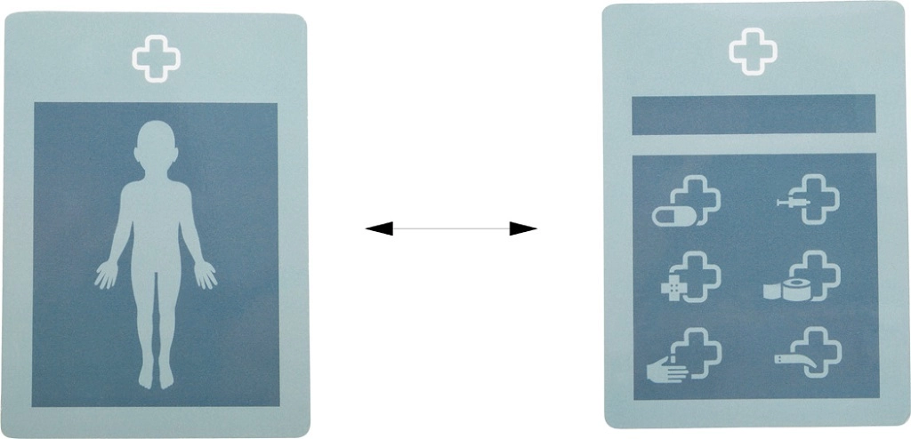 - Kompletny zestaw: stetoskop, strzykawka, termometr, pęseta, szpatułka, bandaż, karty pacjenta, pisak.