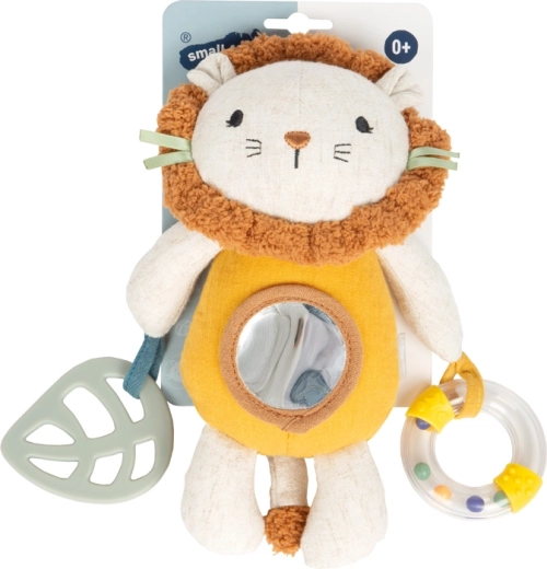 Urocza zawieszka–grzechotka lew od small foot zachwyci maluszki od urodzenia. Oferuje mięciutkie materiały, zintegrowaną grzechotkę, bezpieczny gryzak oraz praktyczną pętelkę do wózka lub fotelika samochodowego. Dzięki różnym fakturom, małemu lusterku i różnorodnym dźwiękom wspiera rozwój zmysłów i małej motoryki – idealny towarzysz w domu i w podróży.