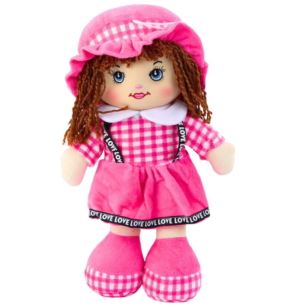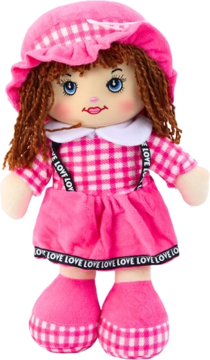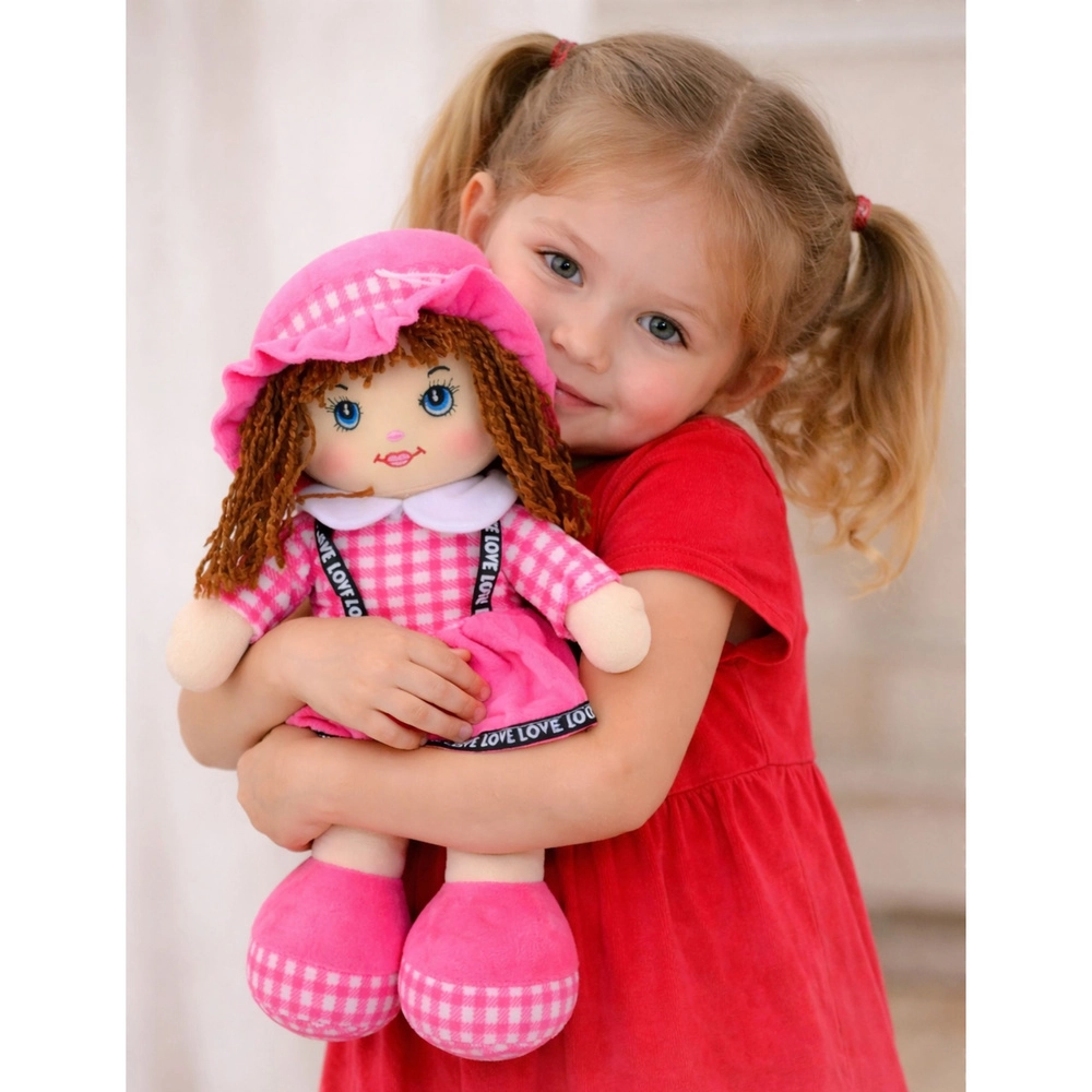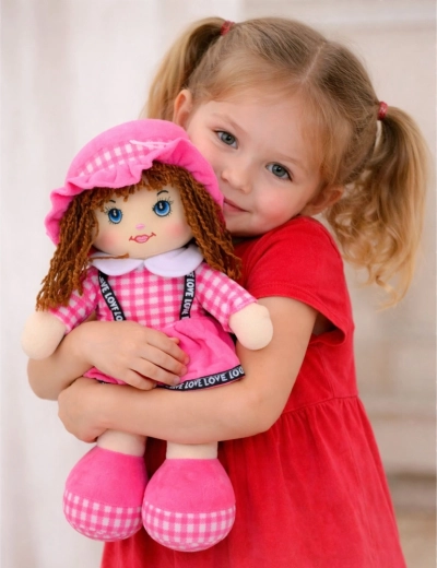Urocza różowa materiałowa lalka o wysokości 35 cm to idealna towarzyszka do codziennej zabawy i przytulania. Wykonana z miękkich i bezpiecznych materiałów, ma delikatne wypełnienie oraz haftowane detale twarzy bez małych elementów. Styl uzupełnia różowa kraciasta spódniczka, kapelusik i miękkie buciki – perfekcyjne do zabawy w udawanie i ćwiczenia umiejętności opiekuńczych.
