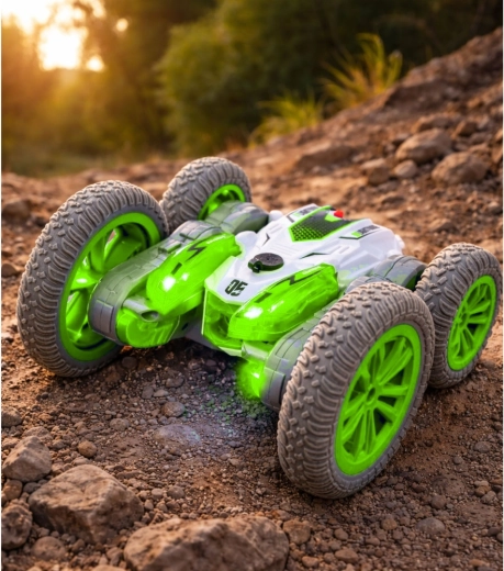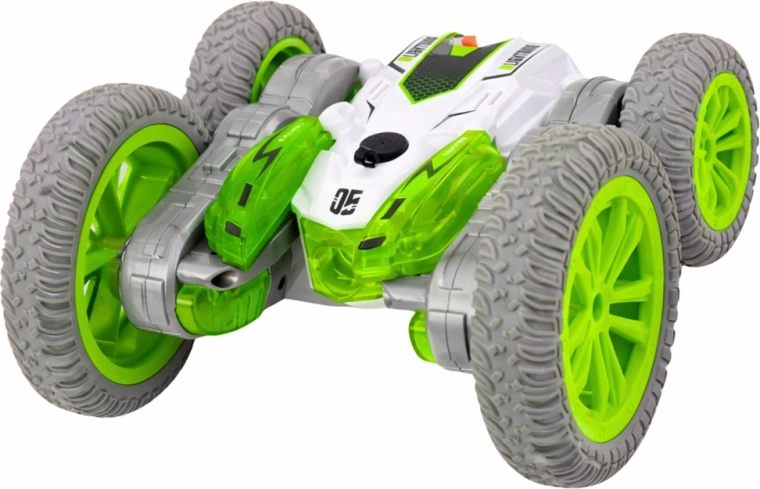 To kaskaderskie auto zdalnie sterowane zapewnia dynamiczną jazdę, obroty o 360° oraz jazdę do przodu/tyłu i na boki. Dzięki podwójnej konstrukcji nadwozia potrafi jeździć po obu stronach i po saltach kontynuować akcję bez zatrzymywania. Zintegrowane diody LED wraz z podświetlanym efektem mgły tworzą atrakcyjny „dymny” ślad, który podkreśla każdy trik.
