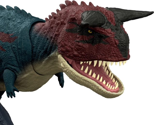 Teksturowana skóra, rogi i filmowe kolory inspirowane Jurassic World czynią z Carnotaurusa wciągającą figurkę do zabawy i kolekcjonerskiej ekspozycji.