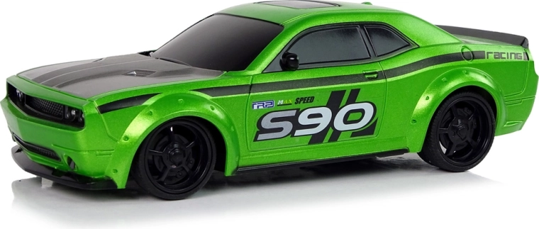 Intensywna zielona barwa, sportowe naklejki i tylny spojler sprawiają, że auto jest nie do przeoczenia na domowych torach.