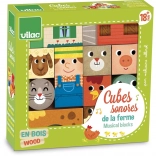 Vilac Drewniane dźwiękowe klocki Farma to zabawne i edukacyjne zabawki, które pomagają dzieciom rozwijać umiejętności motoryczne i odkrywać różne dźwięki.