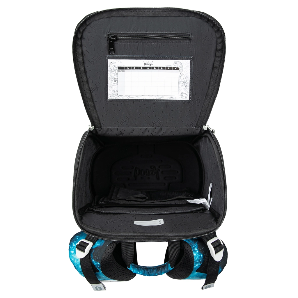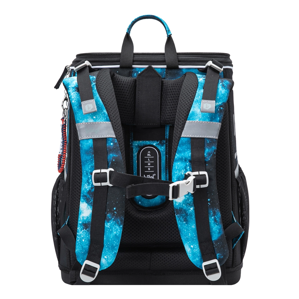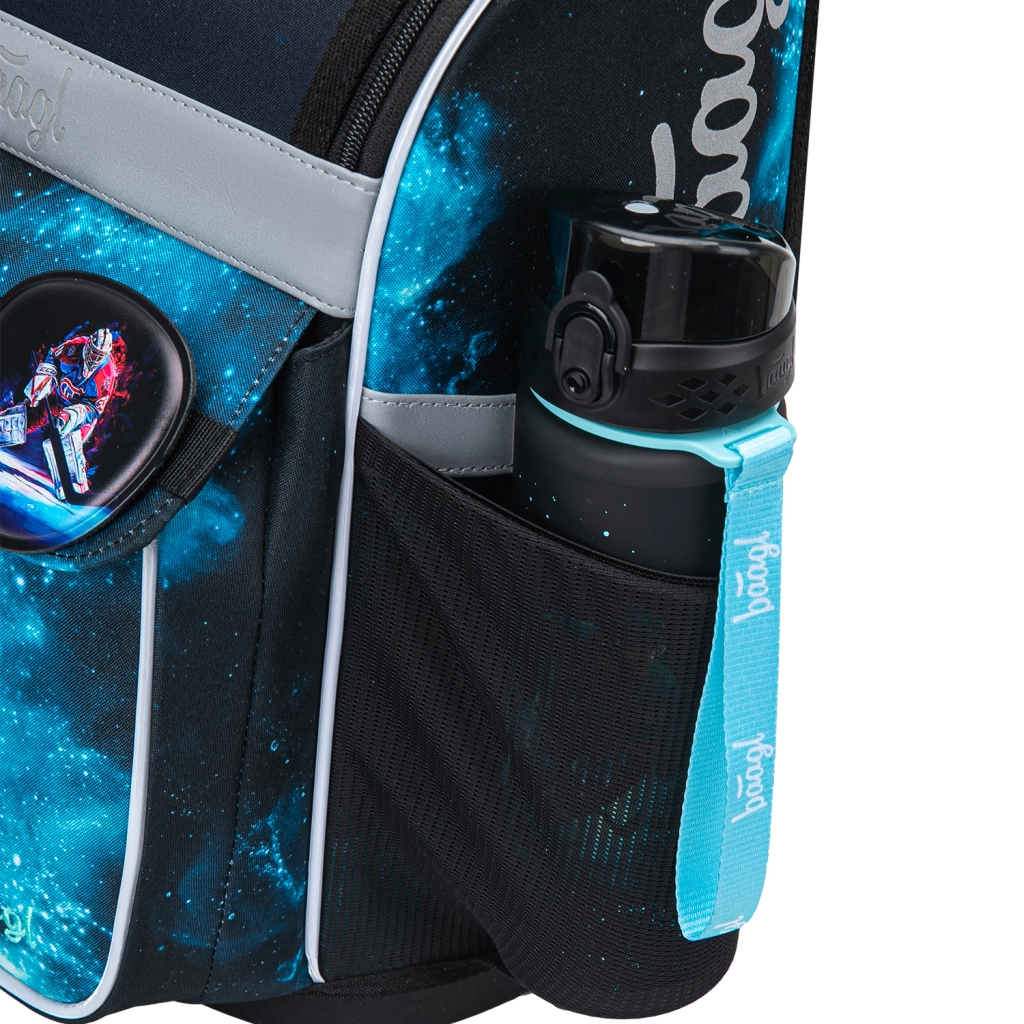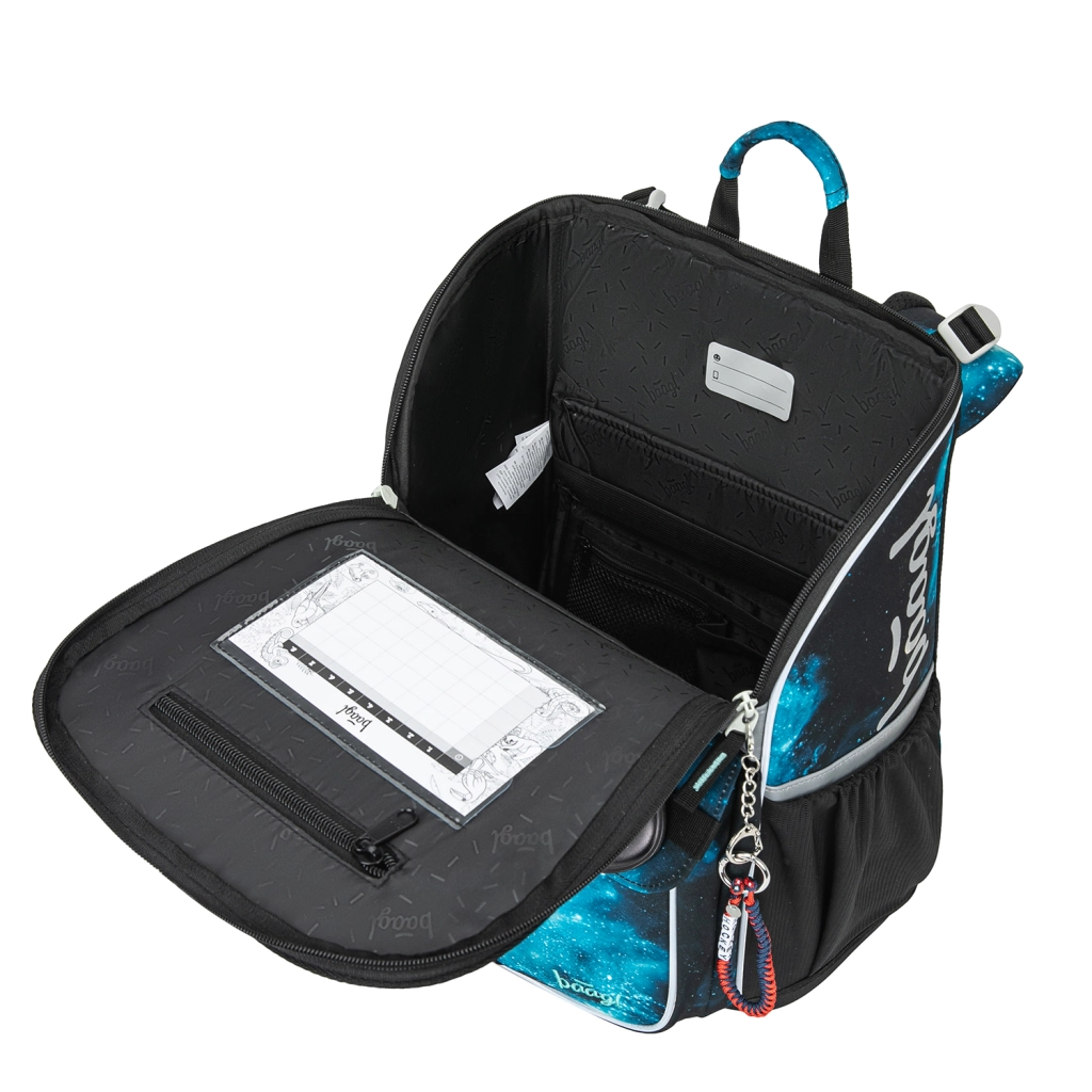 Sprytny odchylany system otwierania umożliwia łatwy dostęp do zeszytów prosto z ławki. Wewnątrz znajdziesz gumkę mocującą do utrzymania środka ciężkości blisko pleców oraz przejrzysty podział. Boczne kieszenie z wytrzymałego materiału są idealne na butelkę z napojem. Elementy odblaskowe zwiększają bezpieczeństwo przy gorszej widoczności.
