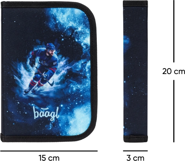 Kompletny szkolny zestaw BAAGL Zippy Hokej dla uczniów klas 1–3 obejmuje ergonomiczny tornister, pojemny piórnik oraz praktyczny worek. Oferuje regulowany system pleców, bezpieczne elementy odblaskowe, niezawodne zamki YKK oraz trwałe, wodoodporne materiały z hokejowym motywem, które ułatwiają dzieciom każdy szkolny dzień.