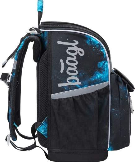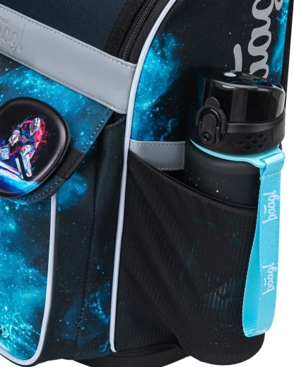 Odchylany system otwierania, przestronna komora główna z organizerem, gumka do stabilizacji zawartości oraz boczne kieszenie na bidon zapewniają porządek i stabilność szkolnych akcesoriów.