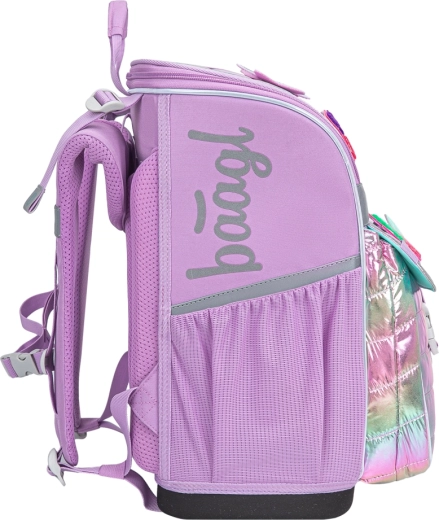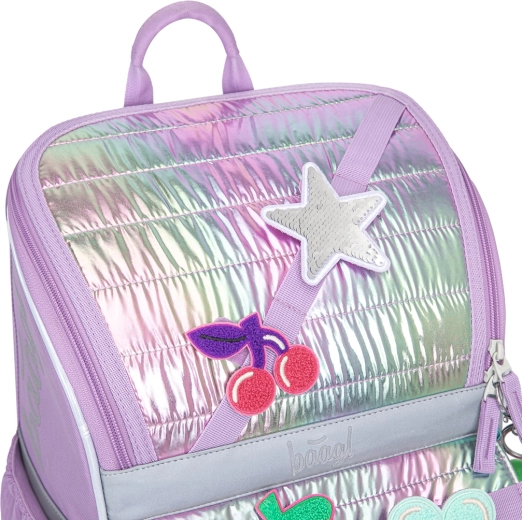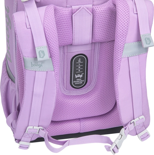Szkolny zestaw BAAGL Zippy Lavender łączy praktyczne wykonanie z efektownym, opalizująco-błyszczącym designem. Ergonomiczny tornister z przesuwnym systemem pleców ERGO ADJUSTABLE dopasowuje się do sylwetki dziecka, a odchylana klapa i przemyślana organizacja ułatwiają dostęp do podręczników i przyborów prosto z ławki. Zestaw uzupełnia dwuskrzydłowy piórnik z solidnym zamkiem YKK oraz zmywalny worek na obuwie lub sprzęt sportowy.
