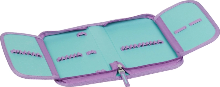 - Sprytna organizacja: odchylana klapa, kieszonka na plan lekcji, kieszonka na drobiazgi na zamek i gumki na zeszyty.