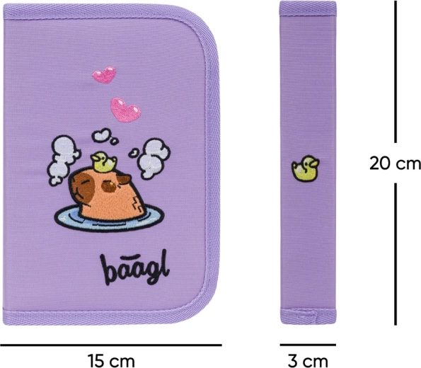 Praktyczny i stylowy piórnik szkolny BAAGL z motywem kapibary oferuje jednoprzegrodowe wykonanie z dwiema klapkami, wytrzymały zamek YKK oraz mnóstwo miejsca na artykuły piśmiennicze. Dzięki mocnym gumkom na ołówki i trójkątne kredki, kieszonkom na drobiazgi oraz okienku na plan lekcji każdy uczeń będzie miał wszystko przejrzyście uporządkowane. Piórnik jest bez wyposażenia i wykonany z materiału z recyklingu.