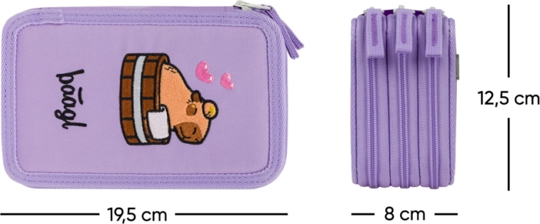 Utrzymaj wszystkie przybory do pisania w porządku w jednym miejscu. Trzywarstwowy szkolny piórnik Baagl z motywem kapibary jest idealny dla uczniów, którzy potrzebują więcej przestrzeni i docenią wysoką jakość wykonania. Dzięki przemyślanemu układowi wygodnie mieszczą się w nim kredki, flamastry, długopisy i inne akcesoria.
