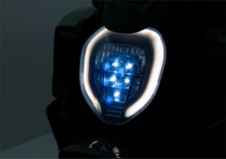 Zintegrowane przednie światło LED zwiększa widoczność i nadaje motocyklowi realistyczny wygląd sportowej maszyny.