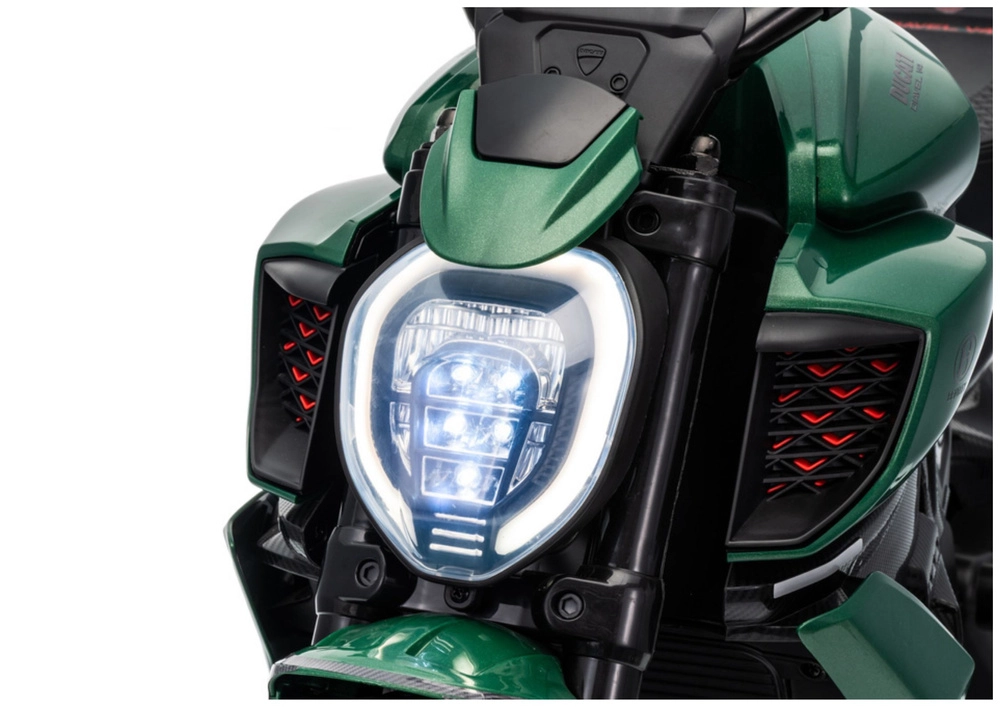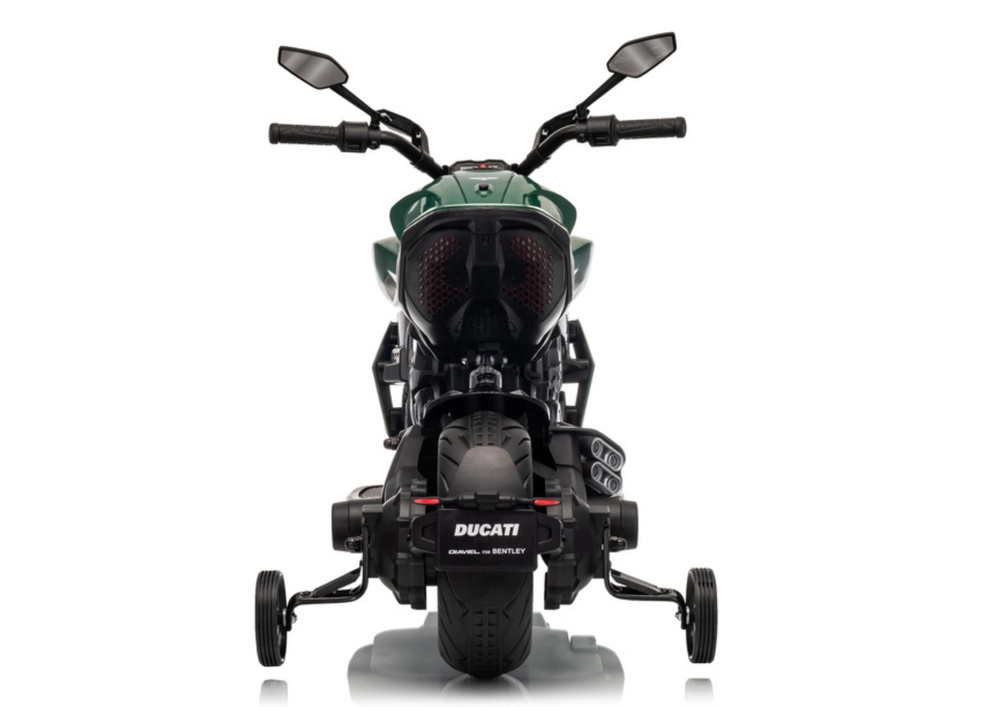 Stylowy dziecięcy motocykl elektryczny inspirowany modelem DUCATI DIAVEL V4 zapewnia dzieciom bezpieczną zabawę i pierwsze wrażenia z jazdy. Dzięki kółkom pomocniczym jazda jest stabilna i odpowiednia także dla początkujących. Motocykl oferuje realistyczne detale, jasne światło LED i wygodne sterowanie kierownicą. Idealny do zabaw na świeżym powietrzu oraz rozwoju równowagi i koordynacji. Kółka stabilizujące, reflektor LED, realistyczny design oraz napęd akumulatorowy ucieszą małych rajdowców i ich rodziców.