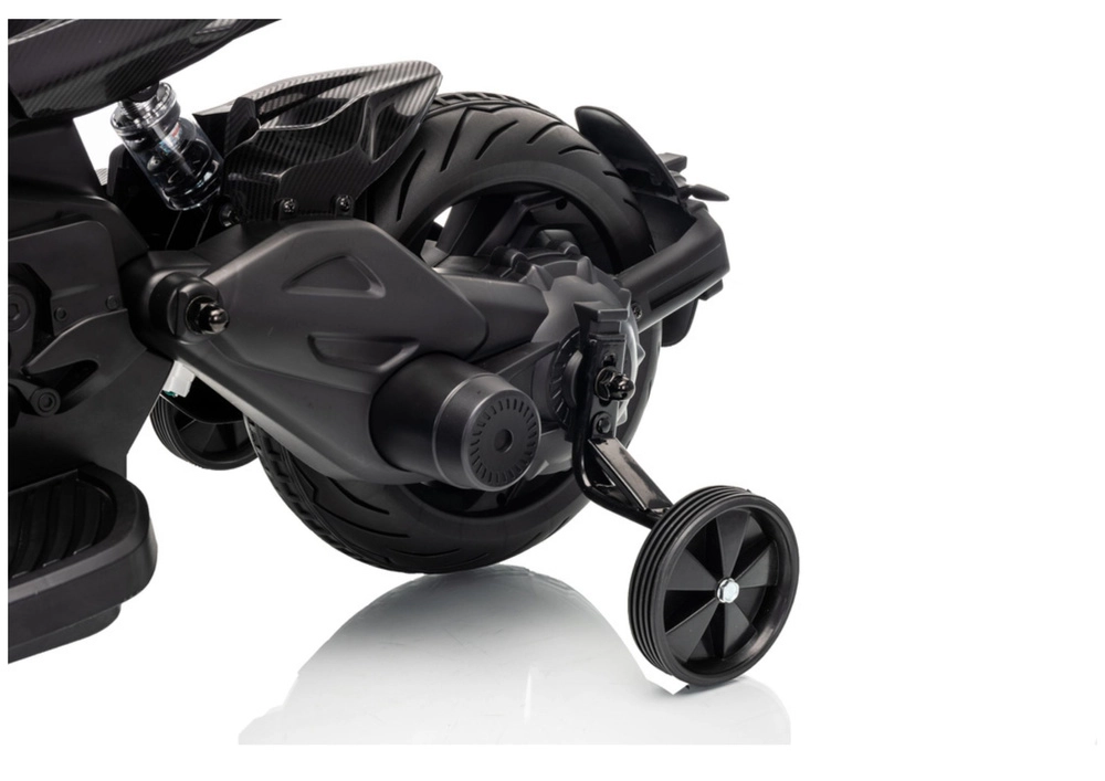 - Dziecięcy motocykl elektryczny z kółkami pomocniczymi