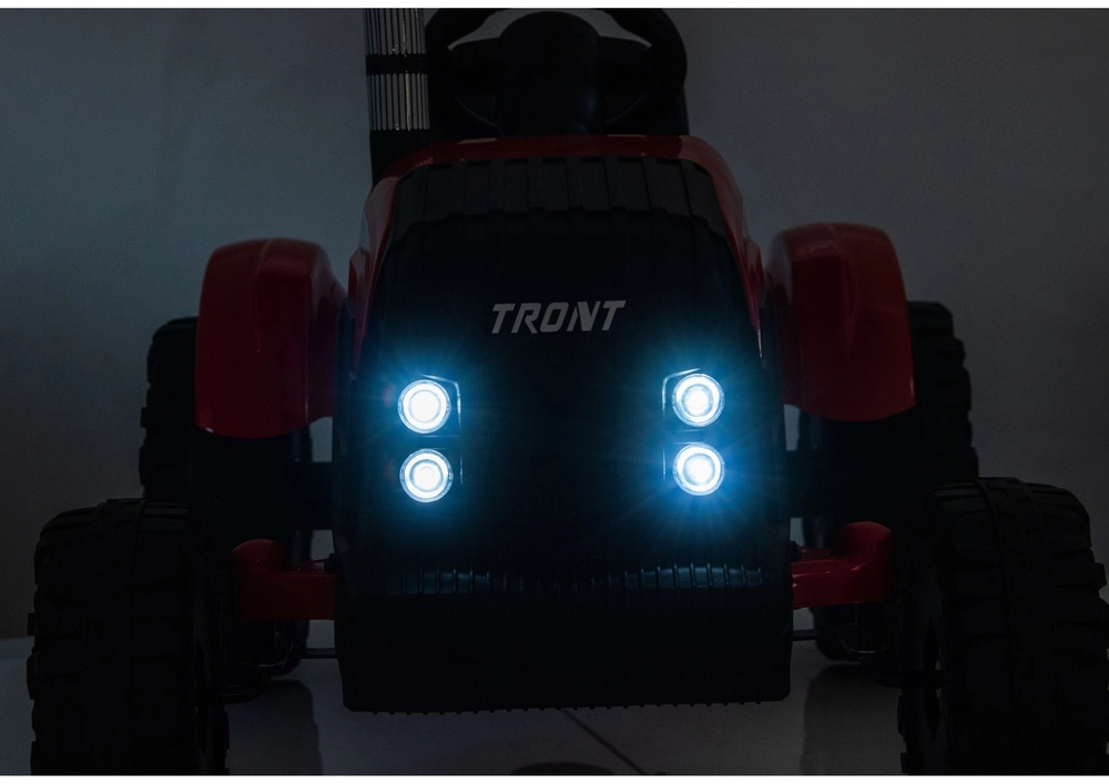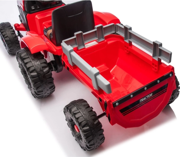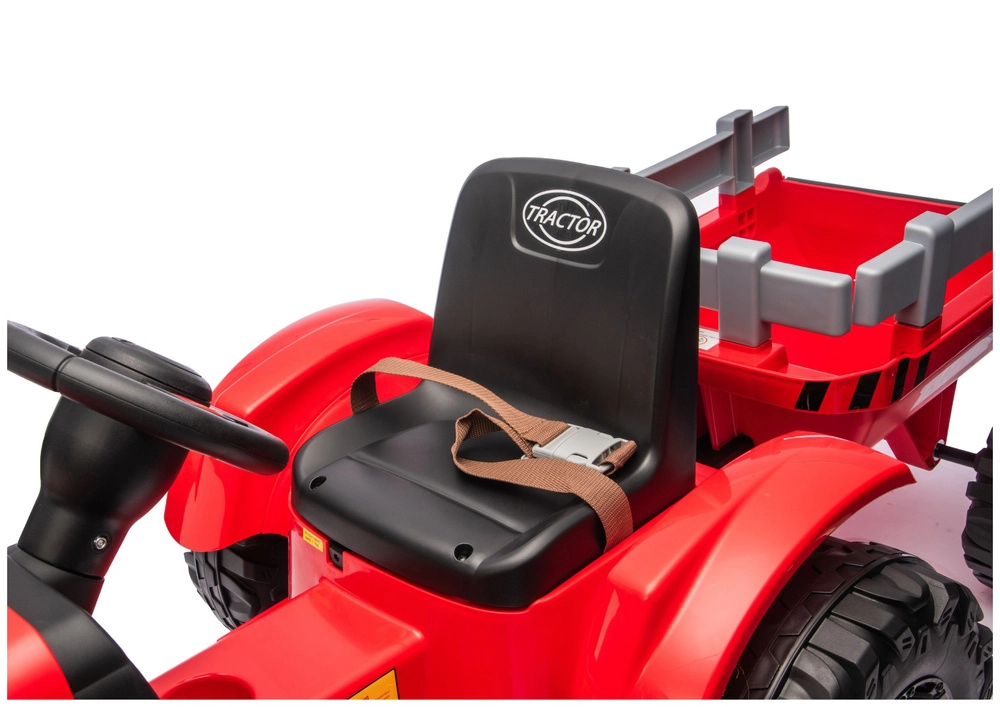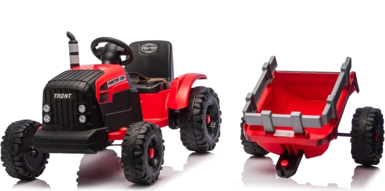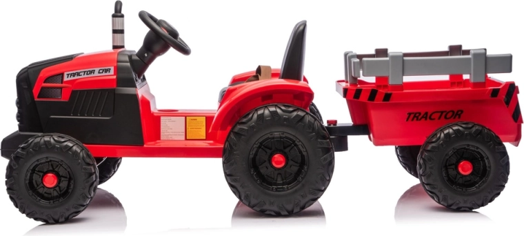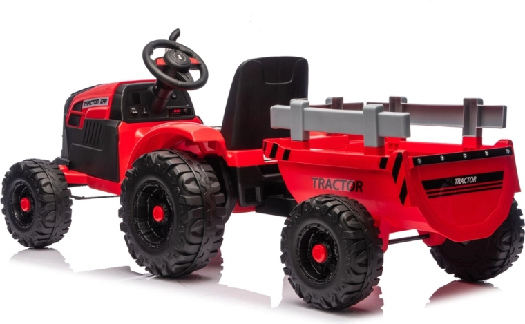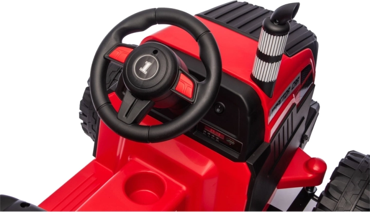 Ten czerwony elektryczny traktor dla dzieci łączy zabawę, bezpieczeństwo i praktyczność. Mocny akumulator 24V zapewnia płynne przyspieszenie, duże profilowane koła trzymają tor jazdy nawet na nierównej nawierzchni, a przyczepa umożliwia przewożenie zabawek, piasku lub drobnych ładunków. Dzięki światłom LED i dopracowanym detalom traktor wygląda bardzo realistycznie.