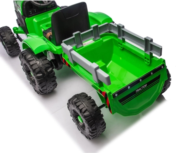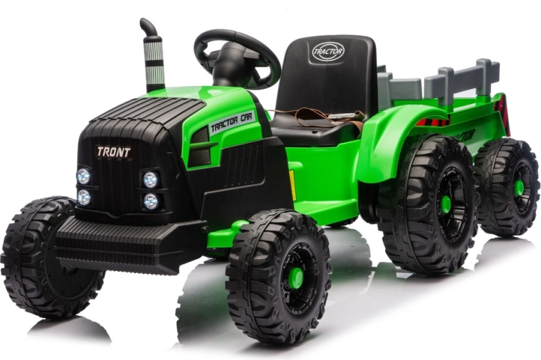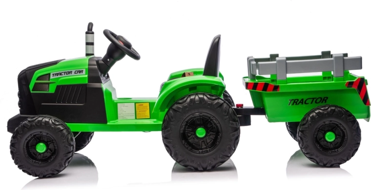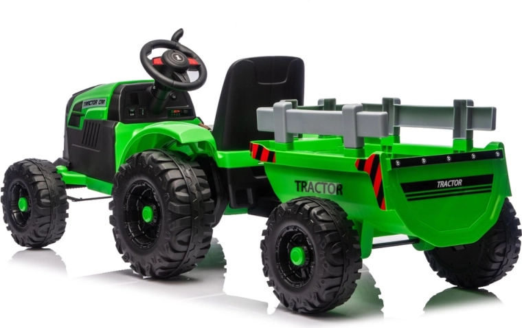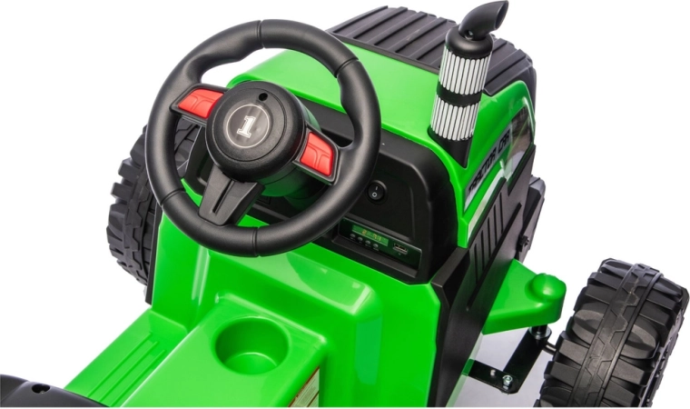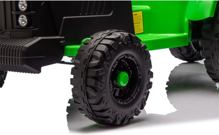 Doświadcz realistycznej jazdy z elektrycznym traktorem, który łączy zabawę, bezpieczeństwo i praktyczność. Dzięki zasilaniu 24V i mocnym kołom z głębokim bieżnikiem poradzi sobie z nierównym terenem na podwórku i w parku. Odłączana przyczepa pozwala dzieciom łatwo przewozić zabawki, liście lub drobne skarby.