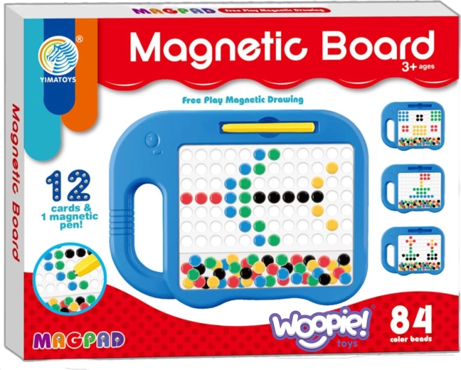 Magnetyczna tablica WOOPIE MagPad Słonik oferuje dzieciom zabawny, a jednocześnie edukacyjny sposób rozwijania umiejętności. Dzięki magnetycznemu długopisowi dzieci łatwo „wyciągają” kuleczki na powierzchnię i układają z nich obrazki, litery i cyfry. W zestawie znajdują się także dwustronne szablony do inspiracji, więc rozpoczęcie zabawy jest naprawdę proste.