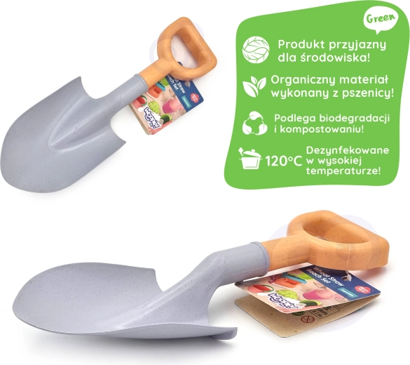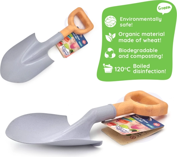 Łopatka WOOPIE GREEN łączy radosną zabawę z odpowiedzialnym podejściem do natury. Jest wykonana z organicznego materiału na bazie włókien pszenicznych, który jest biodegradowalny i kompostowalny. Ergonomiczny uchwyt typu D i szeroka część nabierająca ułatwiają nabieranie piasku i ziemi, dzięki czemu doskonale nadaje się dla małych budowniczych zamków oraz do pierwszych ogrodniczych prób.