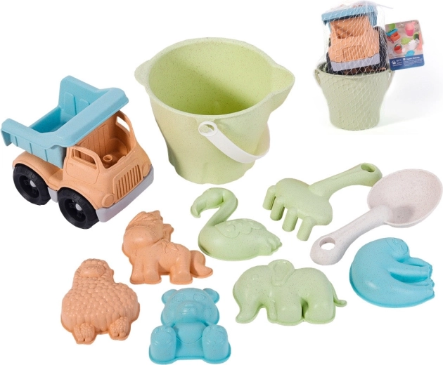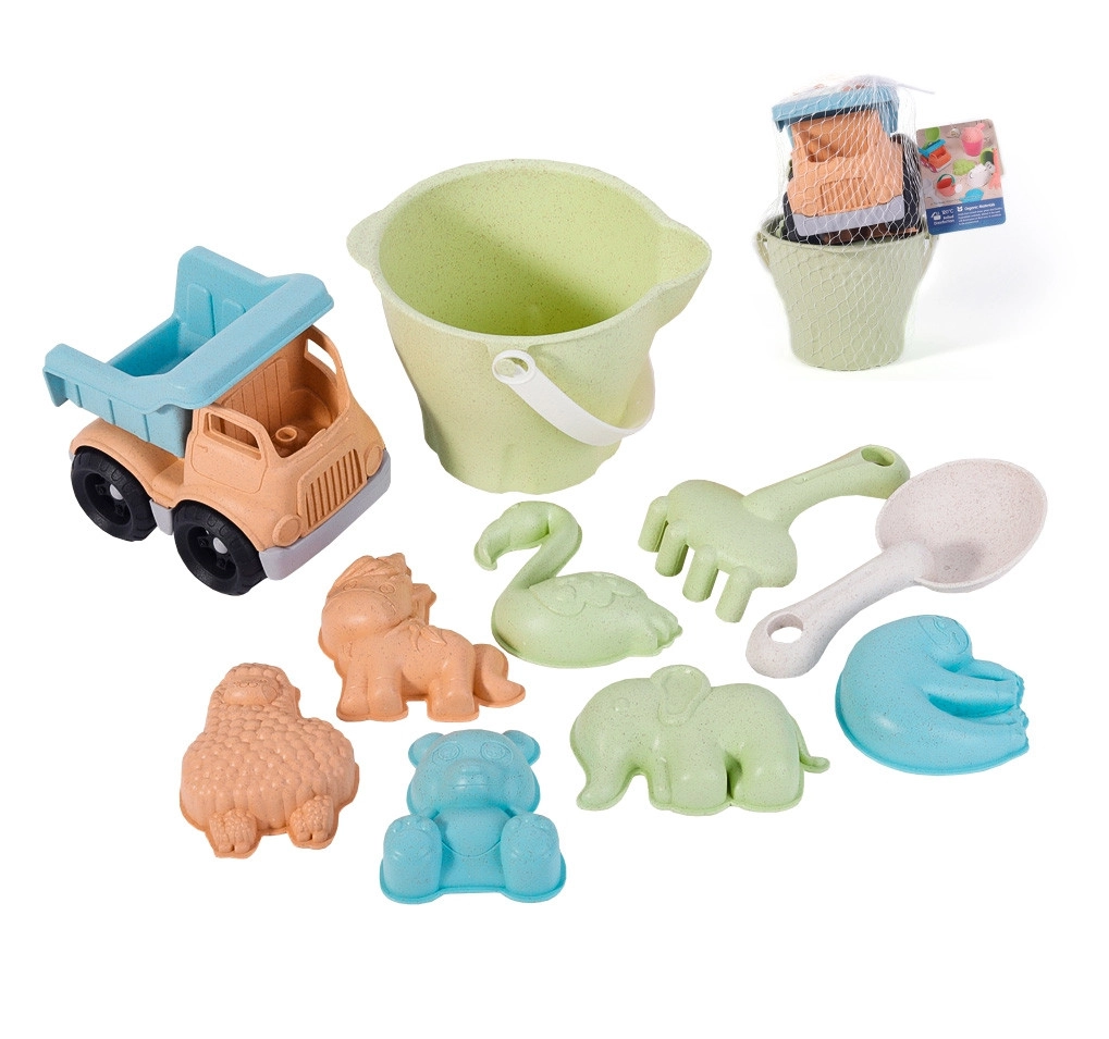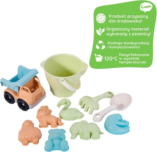 Odkryj zabawę, która jest jednocześnie radosna i przyjazna środowisku, z dziecięcym zestawem do piasku WOOPIE GREEN. Ten 11‑elementowy zestaw w nowoczesnych pastelowych kolorach zawiera wiaderko, konewkę, wywrotkę, łopatki oraz zwierzęce foremki do budowania i tworzenia. Wykonany z organicznego, biodegradowalnego materiału na bazie słomy pszennej i nadaje się do kompostowania. Dzięki zaokrąglonym krawędziom, wygodnym uchwytom oraz dezynfekcji w 120 °C zestaw jest bezpieczny dla dzieci i idealny do piaskownicy, na plażę i do ogrodu.