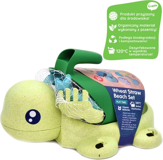 Zestaw Woopie Green Żółwik jest idealny do zabawy w piaskownicy, na plaży, w ogrodzie oraz w wannie. Dzięki wytrzymałemu, a jednocześnie lekkiemu materiałowi ze słomy pszenicznej zestaw jest przyjemny w dotyku, bezpieczny dla dzieci i jednocześnie eco‑friendly. Koszyczek w kształcie żółwika i akcesoria są łatwe do noszenia, porządkowania i wspierają kreatywność oraz małą motorykę.