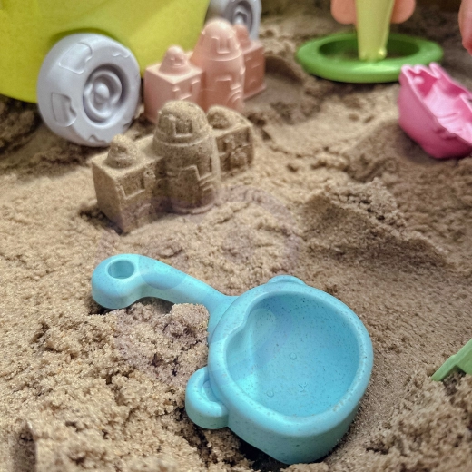 Zestaw wykonano z organicznego, biodegradowalnego materiału i jest kompostowalny, dzięki czemu jest przyjazny dla środowiska. Gładkie, zaokrąglone krawędzie oraz lekka konstrukcja sprzyjają bezpiecznej zabawie i rozwojowi dziecięcej wyobraźni oraz małej motoryki.