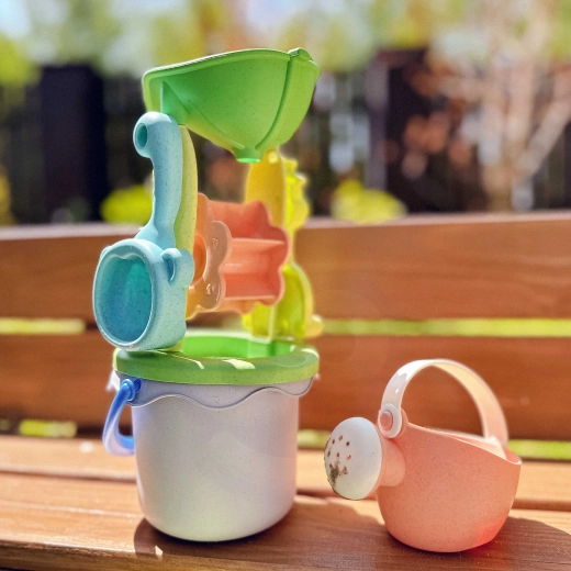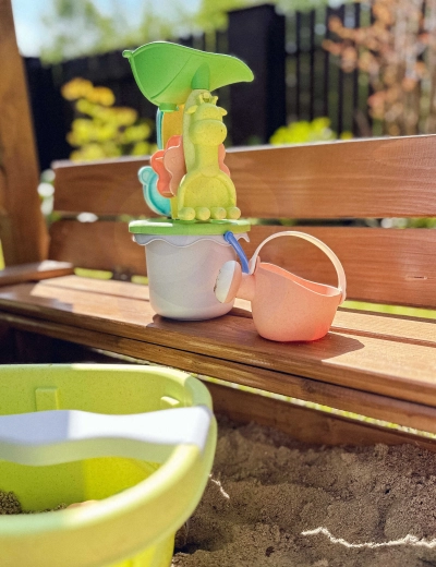 Odkryj zabawny zestaw do piasku z wózkiem marki WOOPIE z serii GREEN, który łączy pastelowy design, praktyczne akcesoria i ekologiczne materiały. W komplecie znajduje się wózek, wiaderko, konewka, młynek z sitem, 7 foremek, łopatka i grabki – wszystko lekkie, bezpieczne i idealne do piaskownicy, na plażę i do ogrodu.