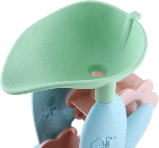 Wlej wodę lub wsyp piasek do lejka i obserwuj, jak skrzydełka się obracają. Interaktywny element zwiększa frajdę i wspiera rozwój zmysłów dziecka.