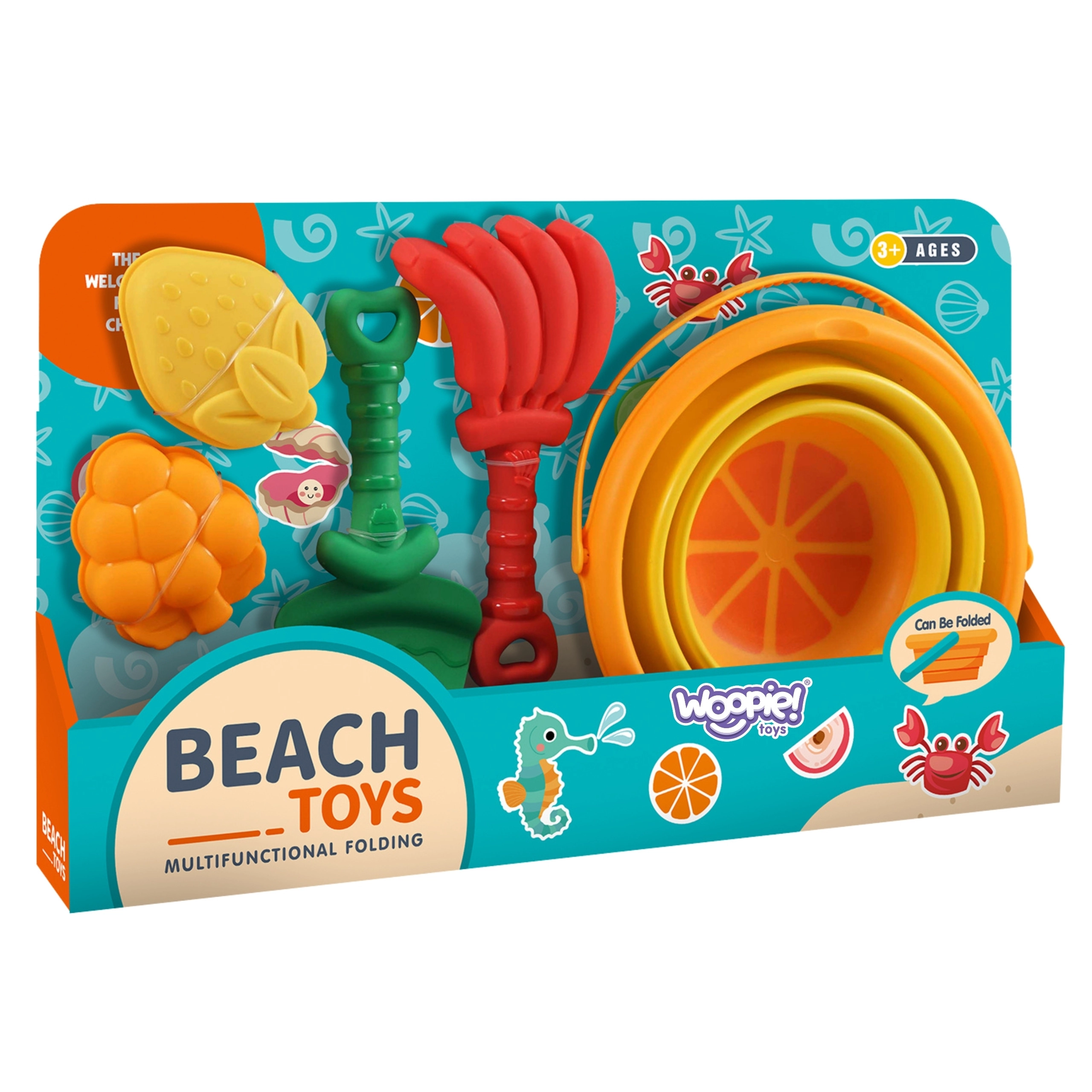 Kolorowy plażowy zestaw do piasku z motywem tropikalnych owoców od marki WOOPIE jest idealny dla dzieci na plac zabaw i na plażę. Oferuje kompaktową konstrukcję, trwały i bezpieczny plastik oraz zabawne kształty narzędzi i foremek, które wspierają kreatywność i motorykę małą.