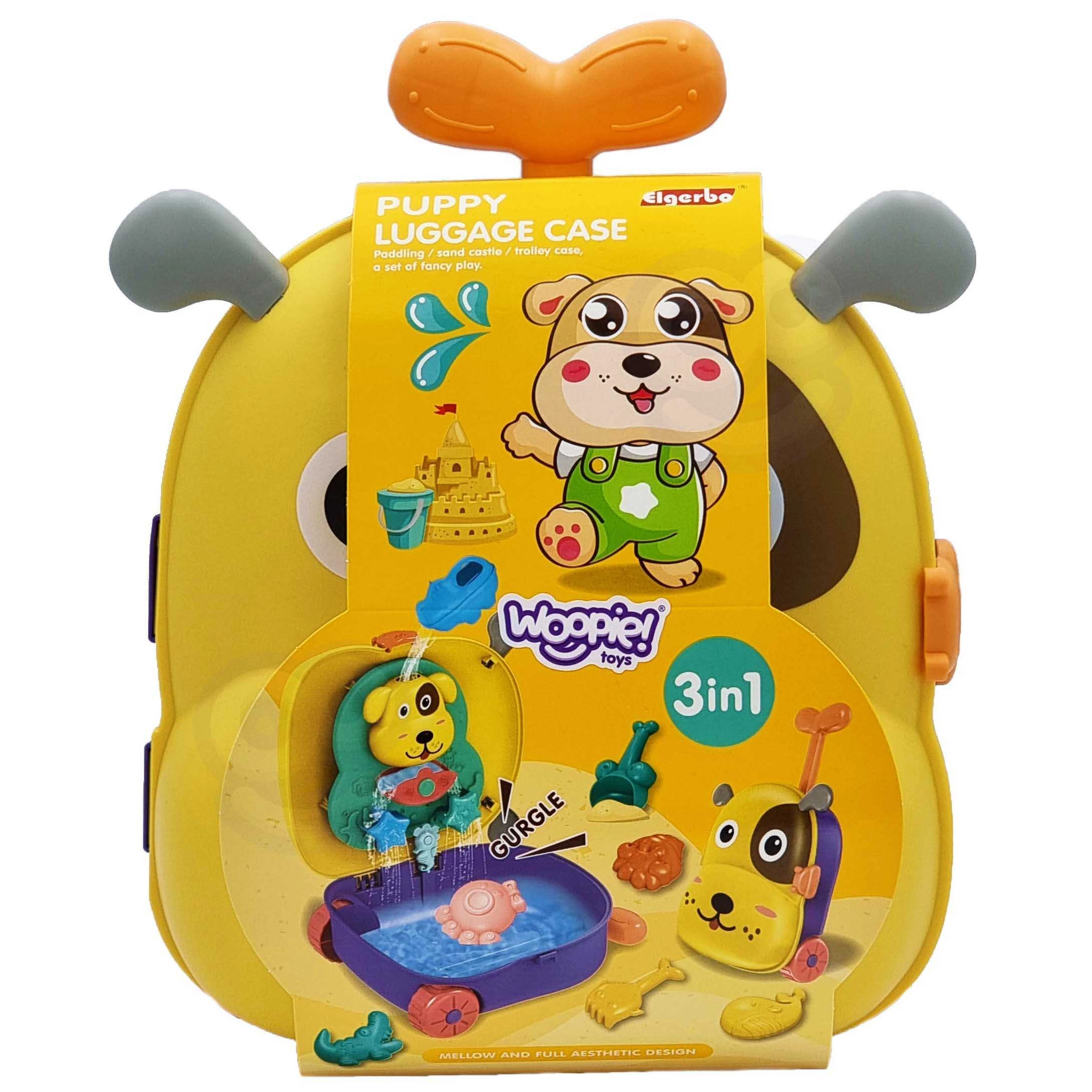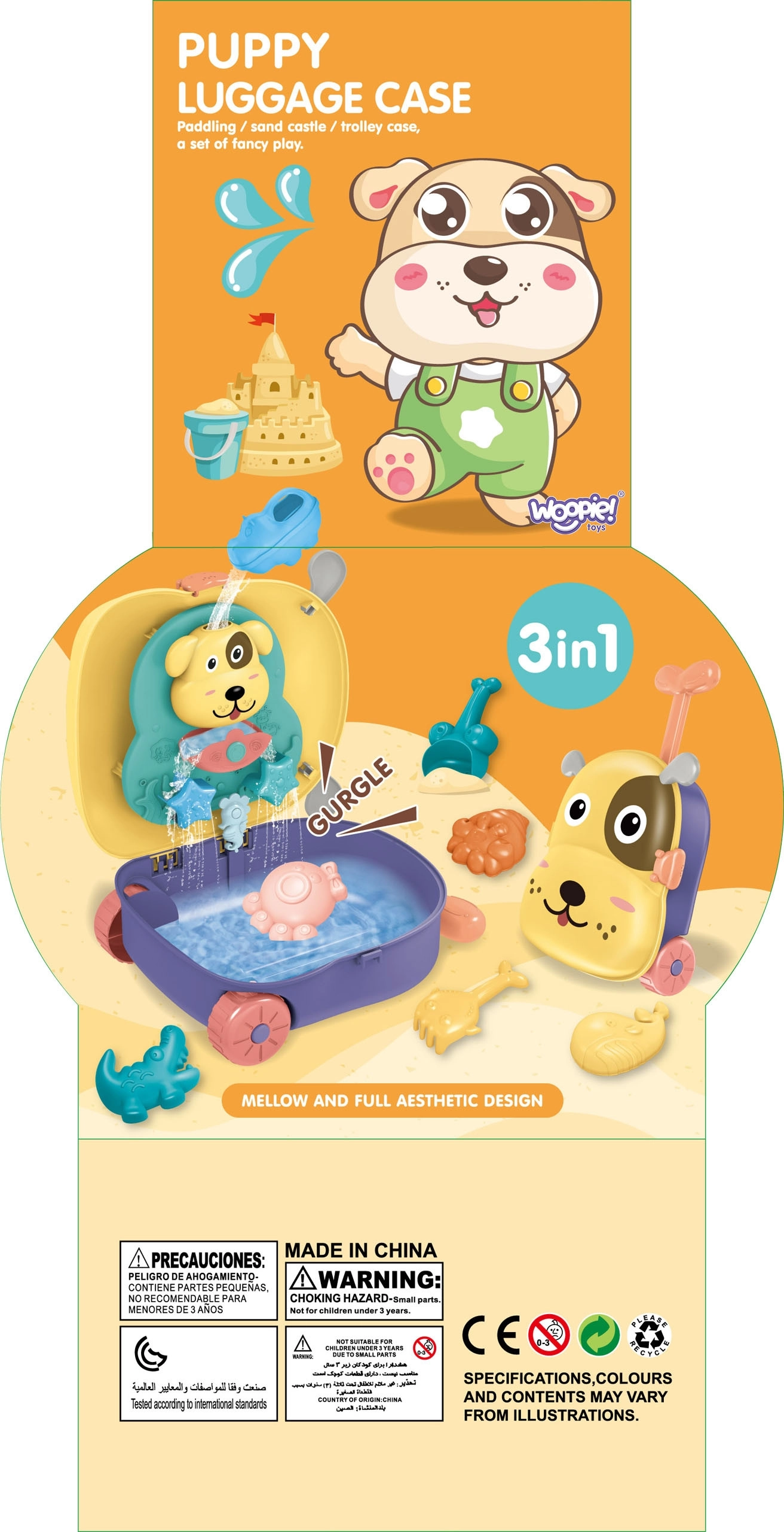 Przenośny dziecięcy zestaw 3w1 marki Woopie łączy kuferek na kółkach, zabawkę wodną oraz zabawki do piasku. Wystarczy napełnić dolną część wodą, wlać wodę do głowicy i obserwować kaskadę i obracające się elementy. Idealny w podróży, do wanny, na plażę i do piaskownicy; rozwija zmysły i koncentrację dziecka oraz zapewnia pełną zabawę także dla dwojga dzieci.
