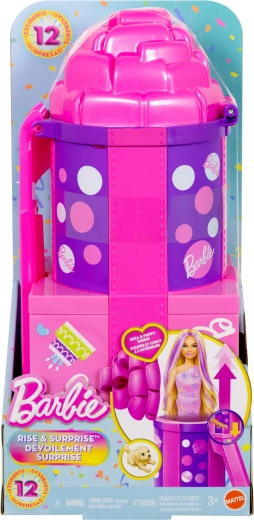 Rozpakowuj radość krok po kroku: po otwarciu „prezentowego” pudełka BARBIE wskakuje na scenę, a z opakowania rozkłada się zjeżdżalnia, po której może zjechać uroczy piesek prosto na urodzinową imprezę. W tajemniczych woreczkach dzieci odkryją dekoracje, babeczki i akcesoria do stworzenia idealnej imprezowej atmosfery.