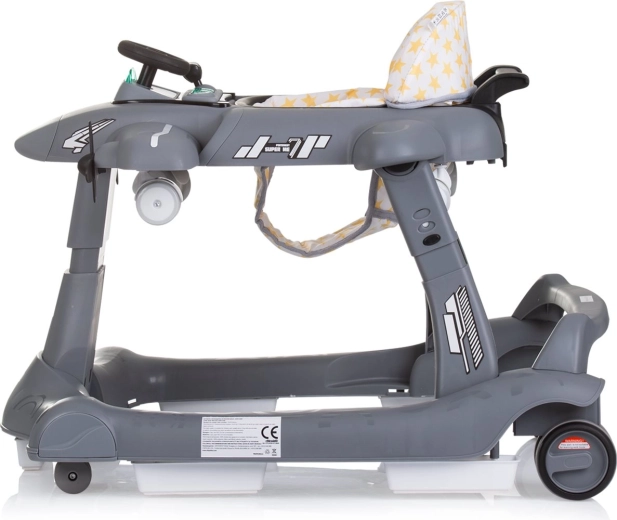 Interaktywny chodzik 3w1 CHIPOLINO Airplane Grey wspiera pierwsze kroki, równowagę i koordynację dziecka już od 6 miesięcy. Oferuje kolorowy panel dźwiękowy z zabawkami, szeroką, stabilną podstawę, 3 poziomy wysokości siedziska oraz możliwość przemiany w pchacz – samolot. Nie brakuje regulacji prędkości, blokady tylnych kół i zatrzasków bezpieczeństwa dla maksymalnej ochrony.