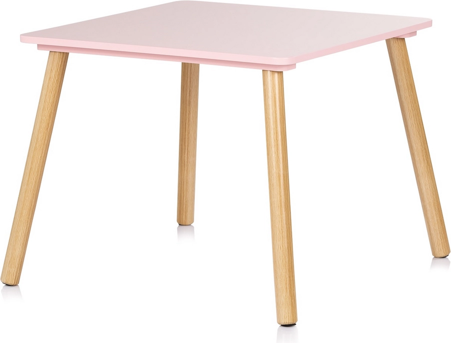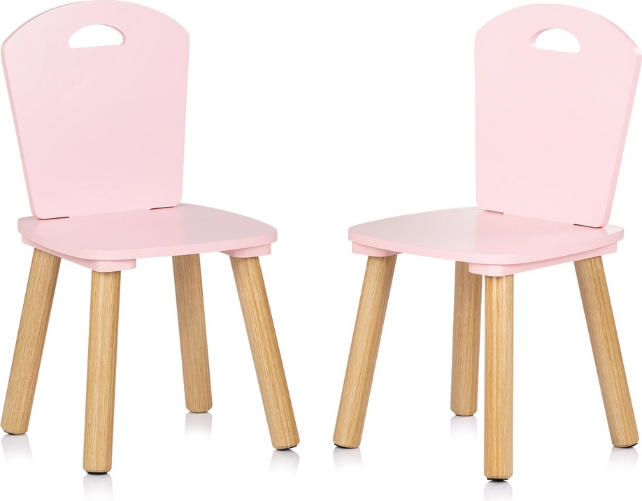 Stylowy i bezpieczny zestaw do pokoju dziecięcego: dziecięcy stolik i dwa krzesełka w delikatnym różowym kolorze z naturalnymi drewnianymi nogami. Zaokrąglone krawędzie dla maksymalnego bezpieczeństwa, solidna konstrukcja z wysokiej jakości płyty MDF oraz ergonomiczne wymiary zapewniające wygodę podczas zabawy, tworzenia i pierwszej nauki.