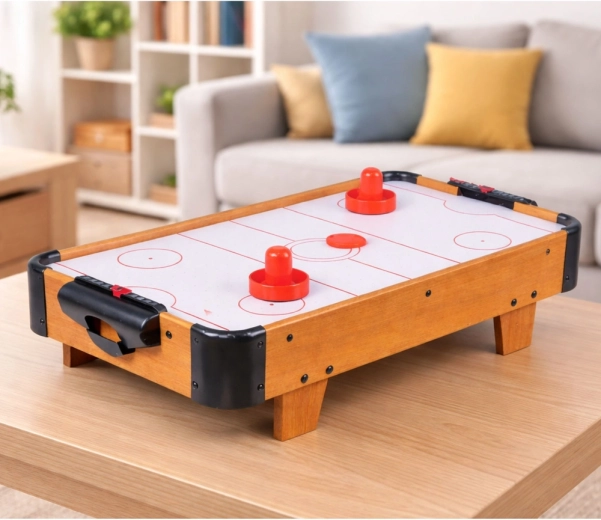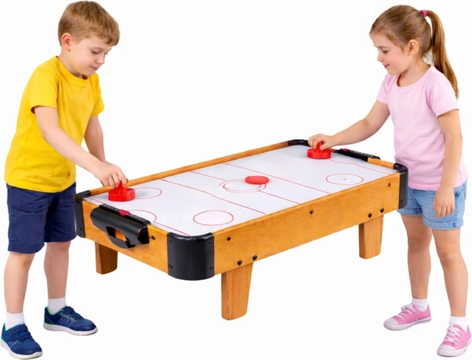Mini stołowy air hockey przenosi atmosferę prawdziwego hokeja na poduszce powietrznej prosto do dziecięcego pokoju. Dzięki kompaktowym wymiarom świetnie sprawdza się w domowej zabawie i na rodzinnych spotkaniach. System air flow tworzy poduszkę powietrzną, po której krążek ślizga się szybko i płynnie – gra jest dynamiczna i realistyczna.