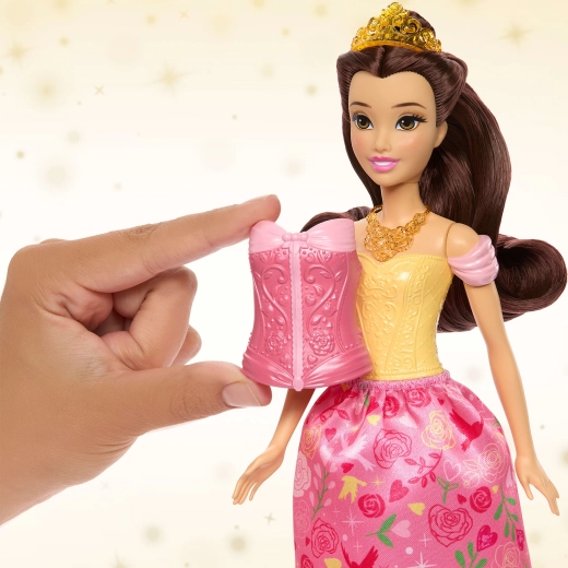 Lalka umożliwia łatwą zmianę wyglądu – wystarczy wymienić gorset i spódnicę, a z popołudniowego spotkania powstaje magiczny bal. Długie włosy można czesać i ozdabiać tiarą, akcesoria wspierają odgrywanie ról, a dzięki punktom artykulacji Bella pięknie pozuje w każdej przygodzie.