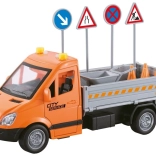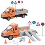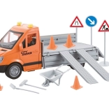 Platforma z odchylanymi rampami umożliwia łatwy załadunek i rozładunek akcesoriów. Dzieci mogą odgrywać autentyczne prace drogowe i działania serwisowe.
